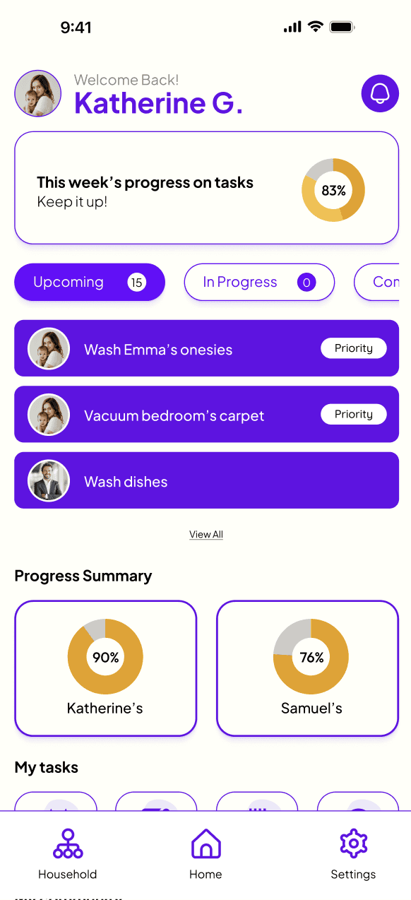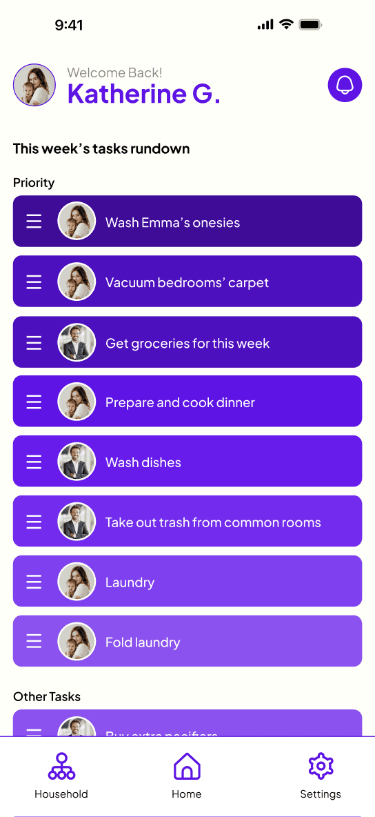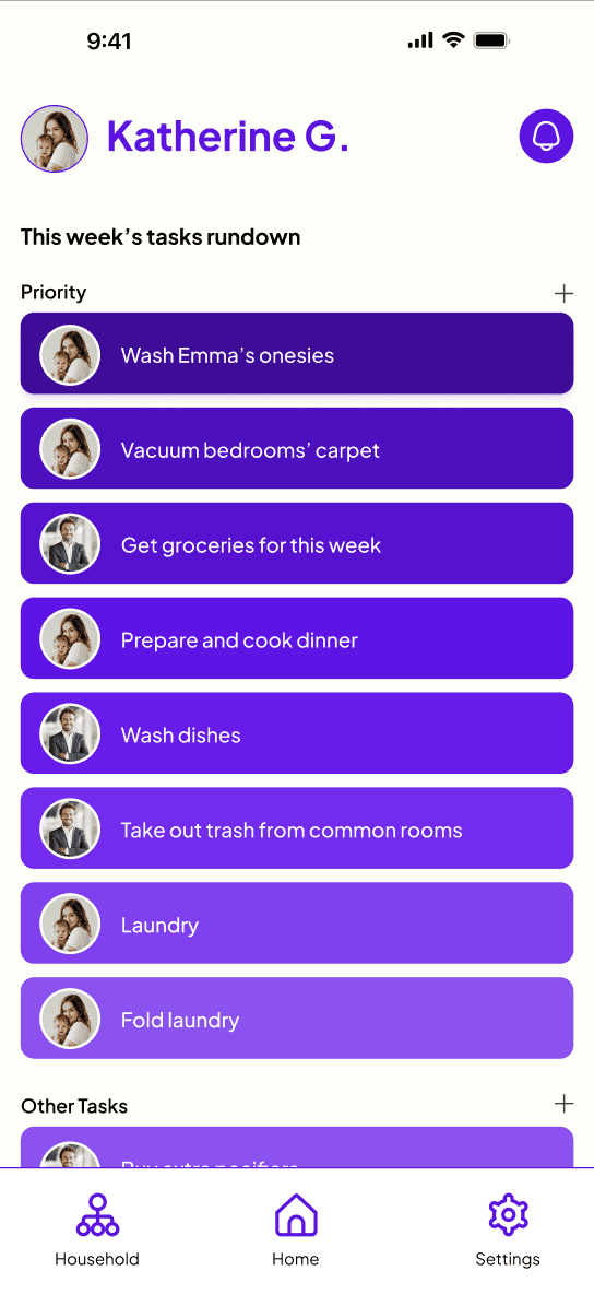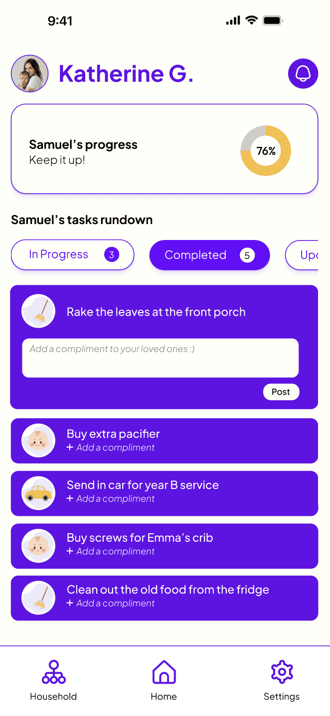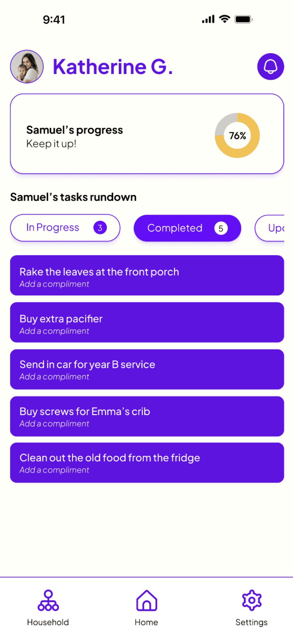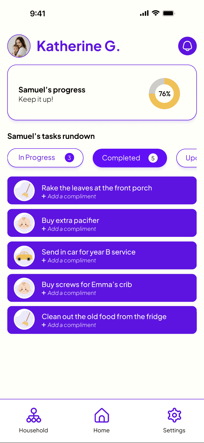 “I need this app in my life! Between work, the baby, and everything else, my husband and I barely have time to figure out who’s doing what. This would keep us organized and even help us stay on top of our family goals each week.”
